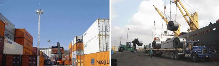 - Contamos con centros de apoyo logístico en los principales puertos: que incluye transporte de contenedor lleno desde el Terminal marítimo hasta el centro de apoyo logístico, vaciado de contenedor, ubicación de la carga en bodega y devolución del contenedor vació al patio de la naviera, bodegaje, registro fotográfico del cargue y almacenamiento.